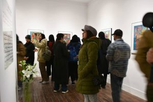نقاش ایرانی با تکرار عناصر و شکل ها و گذاردن نقطه و خطوط مواج یک شعر تصویری ارائه میدهد.