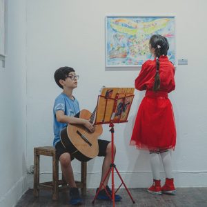 این دومین باری است که نقاشی‌های یک کودک را که مدت‌هاست دنبالش کرده‌ام در گالری سروناز به نمایش می‌گذاریم به‌صورت انفرادی هستی خالدی اولین کسی است که در برپایی نمایشگاه‌های تخصصی آثار کودکان در شیراز پیشرو بوده، حمایت کرده و قطعاً هم خواهد بود. هلیا می‌گوید که کدام کارش را بیشتر دوست دارد از قضا من هم آن را خیلی دوست دارم تا لحظه‌های قبل از نمایشگاه هلیا مادرش عمهٔ مهربانش لیلی کاظمی و هستی خالدی و بچه‌های گالری با من در ارتباط بودند. عنوان نمایشگاه را هم خودش پیشنهاد داد و گفت که رنگ‌ها برایش در جهان قصه‌هایش ارزشمندند و باید به مقصد خودشان بروند انگار که رنگ‌هایش هم در آثارش قصه دارند.